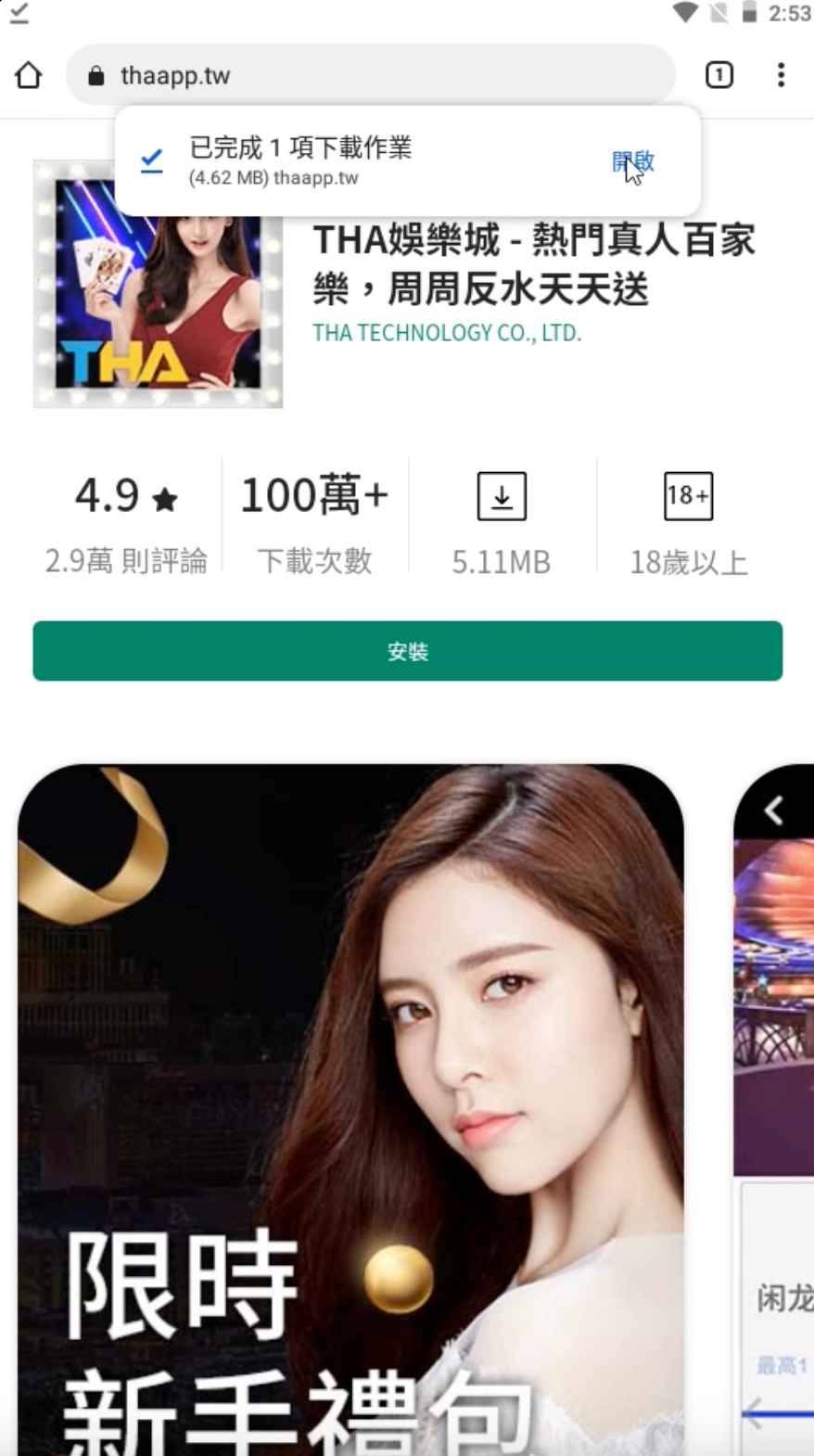 點擊下載連結:點擊THA娛樂城下載連結,系統將引導您進入下載頁面。在該頁面上,您會看到一個下載按鈕,請點選「打開」。